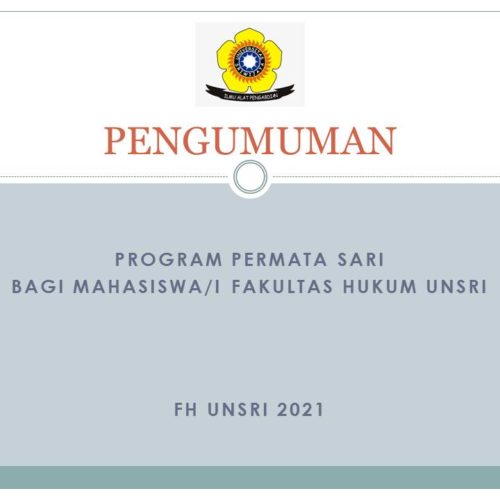 Diberitahukan kepada Mahasiswa/i Fakultas Hukum Universitas Sriwijaya yang berminat untuk mendaftar di program PERMATA SARI harap mengikuti prosedur sebagai berikut:
