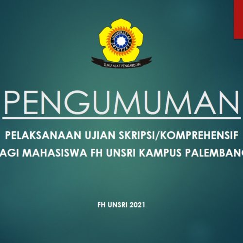 Diberitahukan Kepada Mahasiswa/i Fakultas Hukum Universitas Sriwijaya Kampus Palembang Pelaksanaan Ujian Skripsi/Komprehensif akan dilaksanakan pada: Hari : Selasa Tanggal :