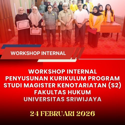 Palembang – Fakultas Hukum Universitas Sriwijaya menyelenggarakan Workshop Internal Perancangan Kurikulum Program Studi Magister Kenotariatan (S2) pada Selasa, 24 Februari 2026, pukul