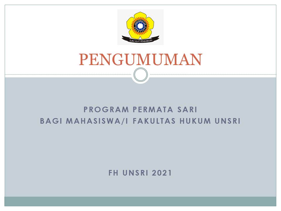 Diberitahukan kepada Mahasiswa/i Fakultas Hukum Universitas Sriwijaya yang berminat untuk mendaftar di program PERMATA SARI harap mengikuti prosedur sebagai berikut: